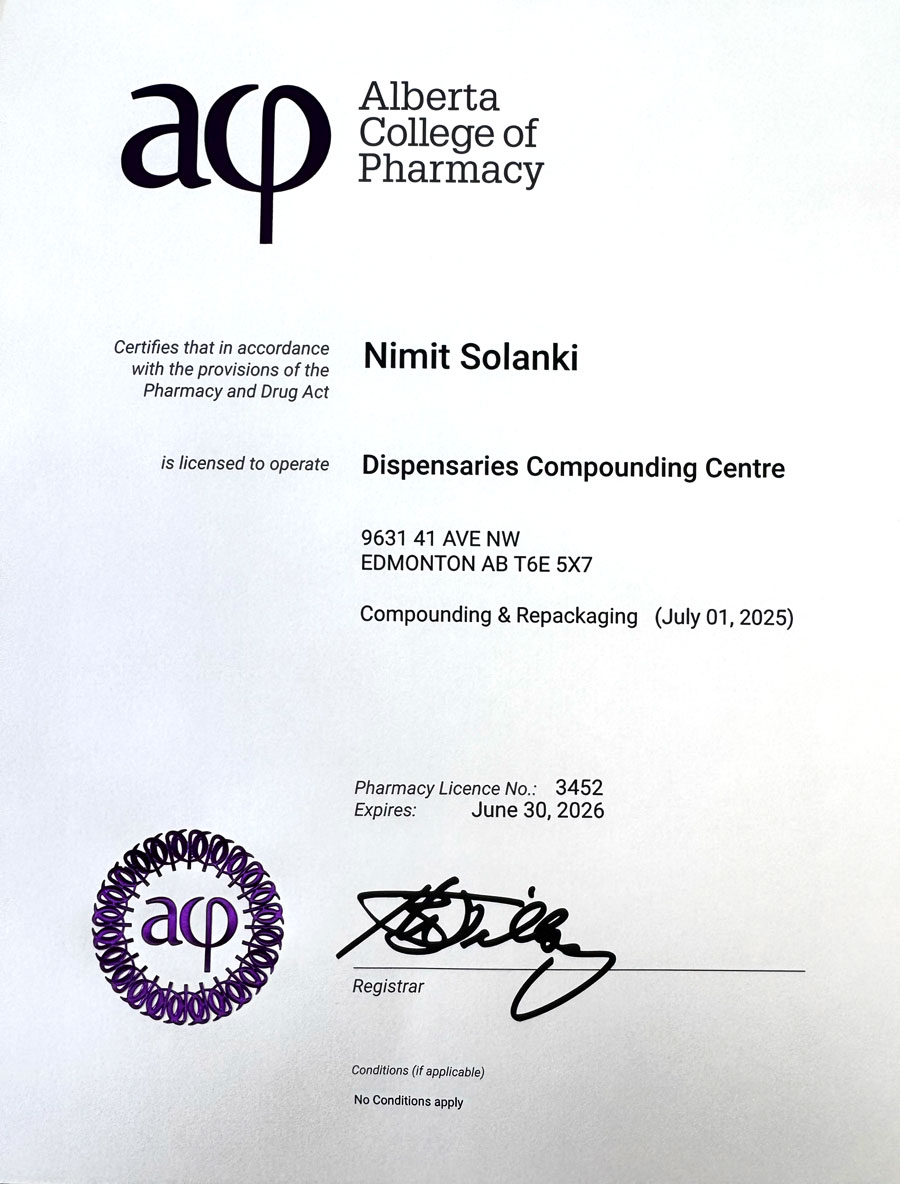 The Dispensaries Compounding Centre prides itself as the industry leader in compounding. Our facility meets both NAPRA sterile and non-sterile guidelines.
